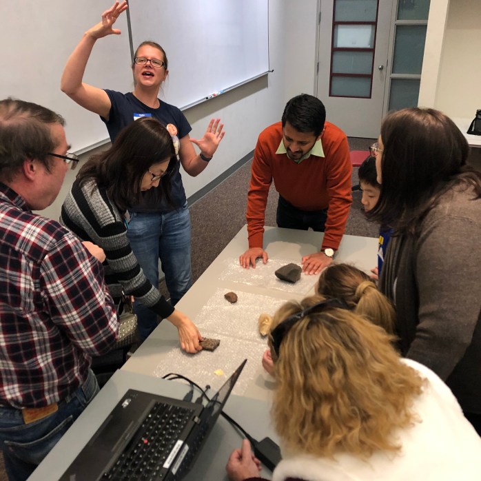 On Friday, 18 October 2019, CMMS had our Fall Social event at the Maryland Space Grant Consortium (MDSGC) at Johns Hopkins University. The evening began with delicious pizza from Joe Squared, and was followed up by CMMS Treasurer Emma Bullock giving a talk about meteorites – what they are, how we recognize them, some of the methods we can use to study them (focusing on optical and scanning electron microscopes – this is a Microscopy event after all!), and what they can tell us about our solar system.